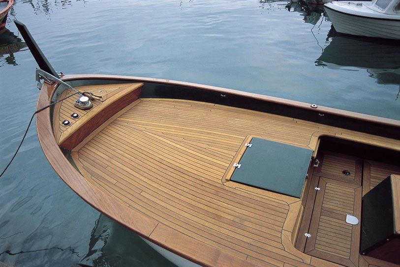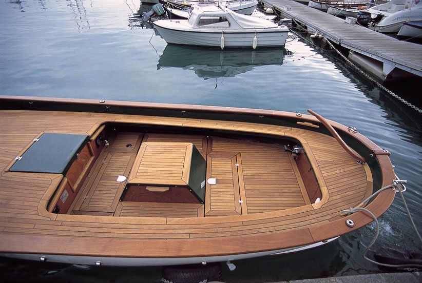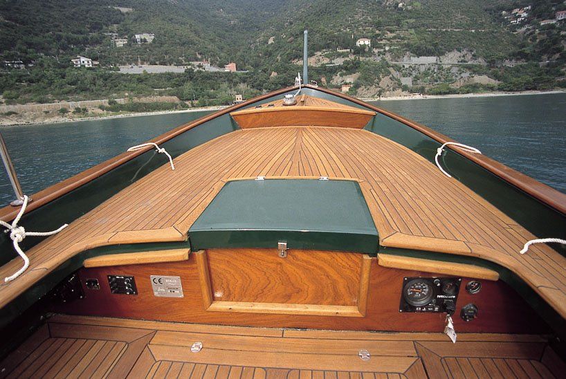 Sermar's gozzos are made of fiberglass and can be covered in fine woods.